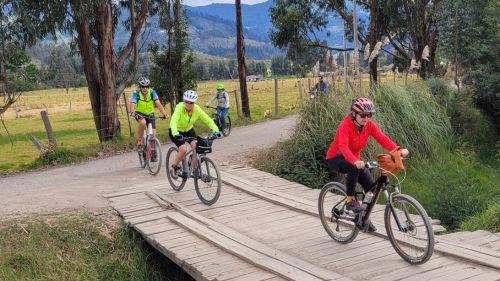 Cruzaremos fincas, campos de cultivo, quebradas y tramos de bosque nativo. Pasaremos a los pies del parque de Iguaque. Tendremos una experiencia inolvidable en las sky-bikes. Tendremos un delicioso picnic y regresaremos a nuestro punto de origen en una ruta circular de unos 60 km y alrededor de 1100 metros de elevación acumulada.